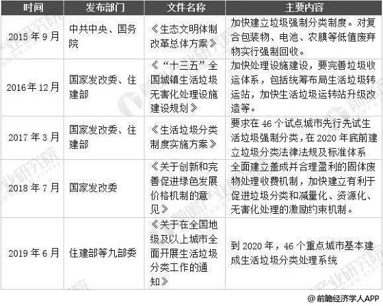 2015-2019年中國(guó)垃圾分類相關(guān)政策匯總情況