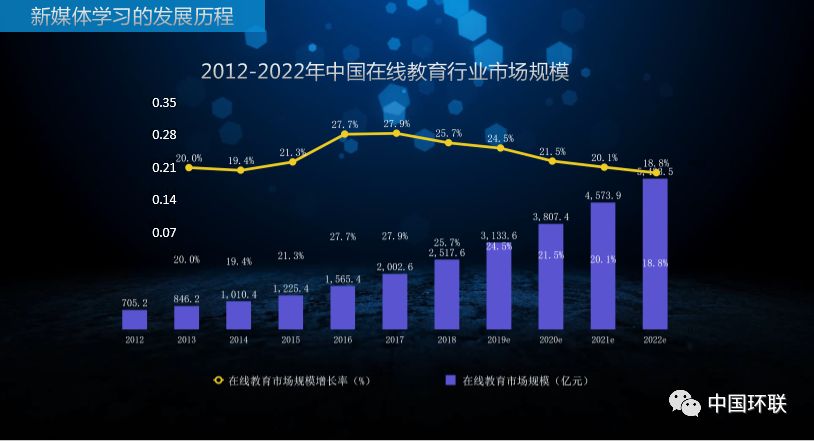中國(guó)在線教育行業(yè)的市場(chǎng)規(guī)模發(fā)展上,已由2012年的705.2億元增長(zhǎng)至2018年的2517.6億元,并基本保持20%以上的年增長(zhǎng)率,預(yù)計(jì)到2022年可突破5000億元。2019年H1中國(guó)在線教育的市場(chǎng)細(xì)分結(jié)構(gòu)上,以高等學(xué)歷教育為主,占比49.6%;其次為職業(yè)培訓(xùn),占比25.5%;K12教育占比20.7%。當(dāng)前新媒體學(xué)習(xí)的用戶粘性持續(xù)加強(qiáng),使用場(chǎng)景更加碎片化,線上學(xué)習(xí)已成為最主流的知識(shí)獲取方式。