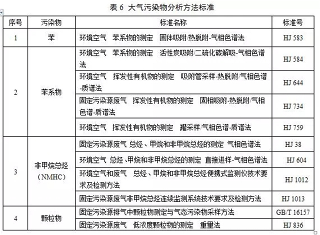 5.4.1 大氣污染物的分析測定應(yīng)按照表6規(guī)定的方法執(zhí)行。
