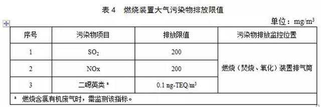 4.3.5VOCs燃燒(焚燒、氧化)裝置除滿足表2或表3的大氣污染物排放要求外,還需對排放煙氣中的二氧化硫、氮氧化物和二噁英類進行控制,達到表4規(guī)定的限值。利用鍋爐、工業(yè)爐窯、固廢焚燒爐焚燒處理有機廢氣的,還應(yīng)滿足相應(yīng)排放標準的控制要求。