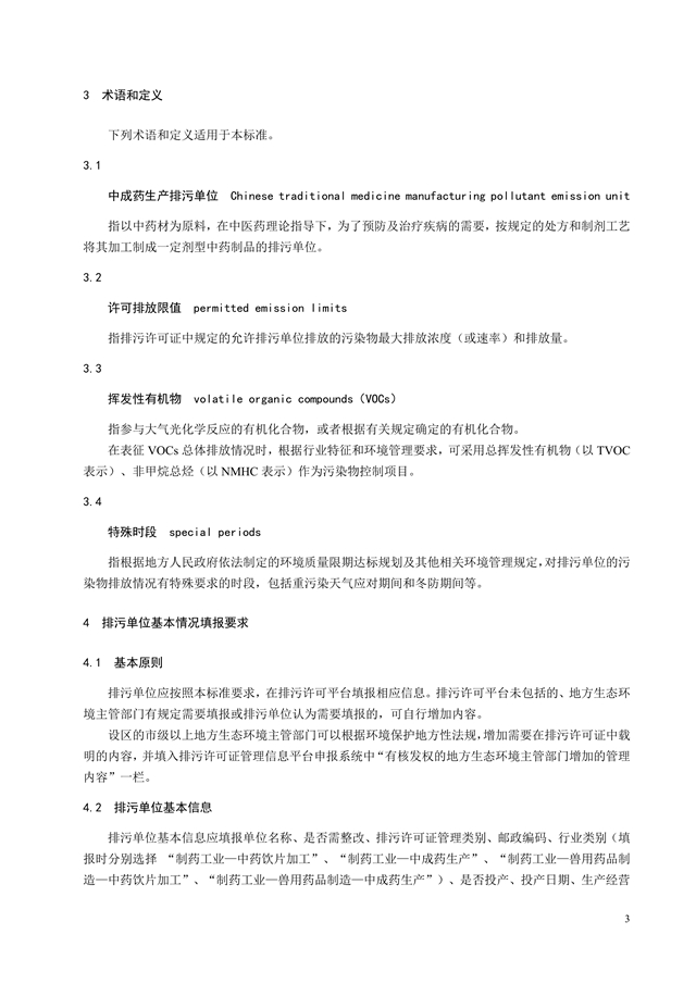 Technical specification for application and issuance of pollutant permit Pharmacy industry-Chinese traditional medicine manufacturing
