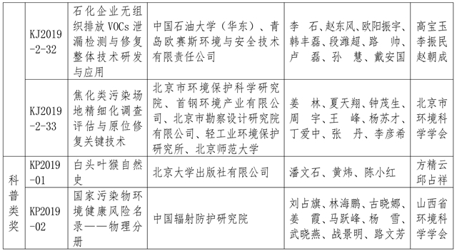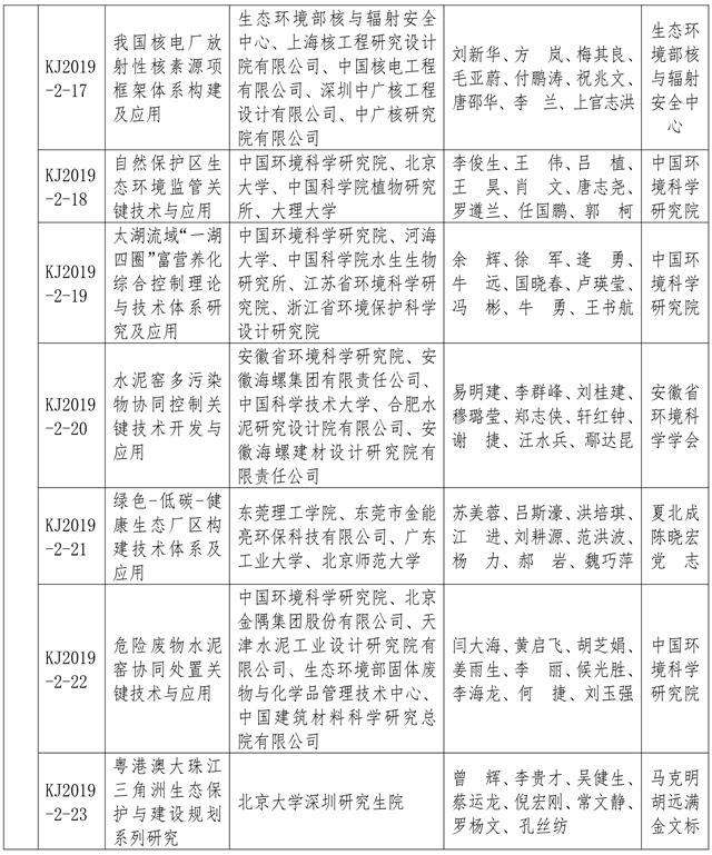 附:2019年度環(huán)境保護(hù)科學(xué)技術(shù)獎(jiǎng)獲獎(jiǎng)項(xiàng)目名單
