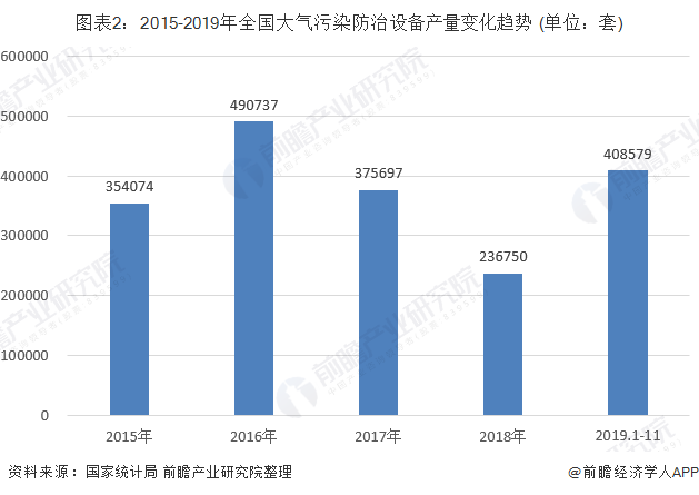 在節(jié)能環(huán)保政策趨嚴的背景下,我國大氣污染行業(yè)得到發(fā)展,大氣污染防治設備產(chǎn)量增長加快。根據(jù)數(shù)據(jù)統(tǒng)計,2018年我國大氣污染防治設備產(chǎn)量為23.68億臺,同比下降了41.67%。2019年1-11月,全國大氣污染防治設備產(chǎn)量達到40.86億臺,超過2018年全年。大氣污染防治設產(chǎn)量回暖與國家節(jié)能環(huán)保政策趨嚴密切相關。