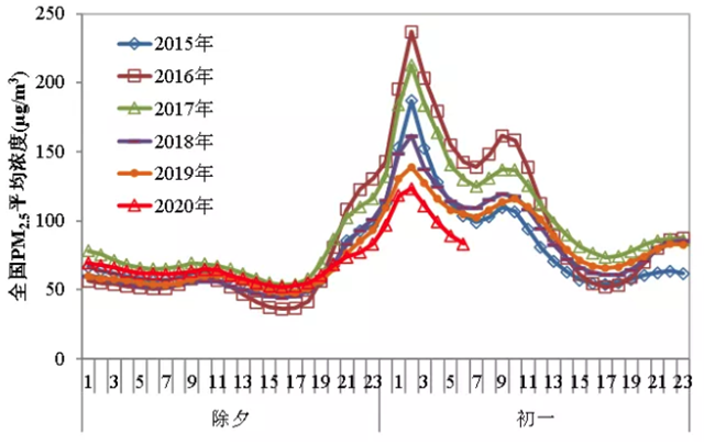 圖4 2015年至2020年除夕至初一北京市逐小時PM2.5濃度