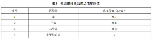 無(wú)組織排放監(jiān)控點(diǎn)濃度限值應(yīng)符合表3規(guī)定。