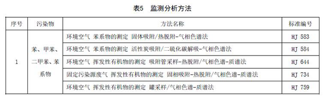 揮發(fā)性有機(jī)化合物濃度的測(cè)定應(yīng)采用表5所列的方法標(biāo)準(zhǔn)或國(guó)家主管部門(mén)認(rèn)定的等效方法。