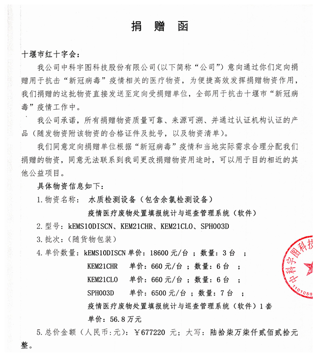 面對(duì)嚴(yán)峻的疫情形勢(shì),中科宇圖積極響應(yīng)國(guó)家號(hào)召,本著對(duì)社會(huì)負(fù)責(zé)的態(tài)度,積極投身疫情防控阻擊戰(zhàn)。2月11日,中科宇圖通過(guò)湖北省十堰市紅十字會(huì),向疫情重災(zāi)區(qū)十堰定向捐贈(zèng)價(jià)值約70萬(wàn)元的軟硬件防疫醫(yī)療物資,受贈(zèng)單位十堰市生態(tài)環(huán)境局將用于抗擊十堰市“新冠肺炎”疫情工作當(dāng)中。