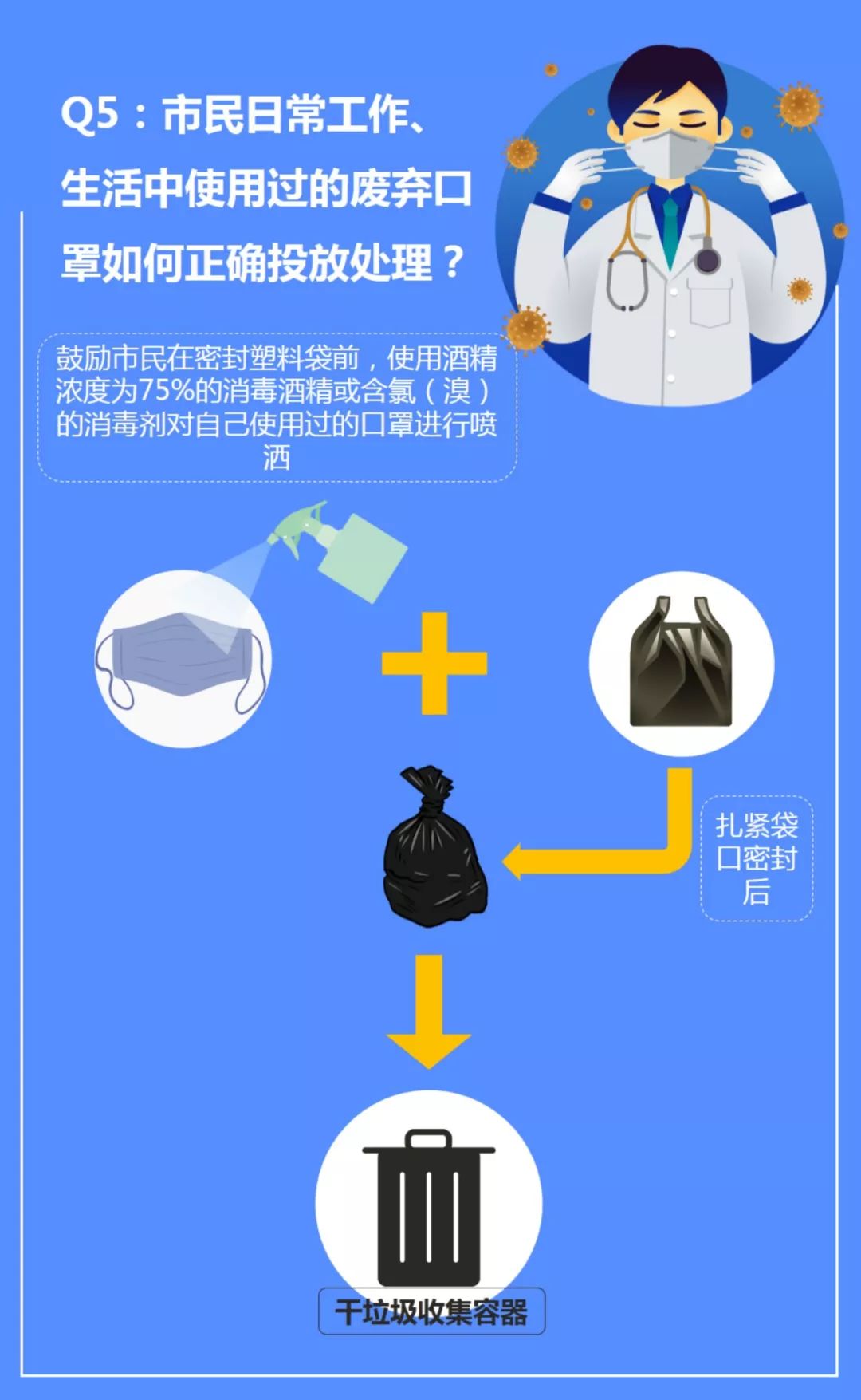 各居家隔離點(diǎn)(戶)、集中觀察點(diǎn)產(chǎn)生的廢棄口罩,應(yīng)嚴(yán)格按照上海市防控新型冠狀病毒感染肺炎疫情重點(diǎn)人員集中隔離觀察場(chǎng)所技術(shù)工作規(guī)范要求,由隔離牽頭部門負(fù)責(zé)指導(dǎo)屬地部門設(shè)立臨時(shí)存放點(diǎn),與日常產(chǎn)生的生活垃圾予以專門存放。