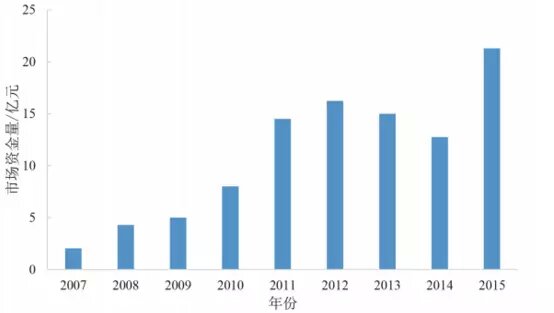 根據江蘇(宜興)環(huán)保產業(yè)技術研究院 - 土盟數據庫和《2015 中國土壤修復發(fā)展白皮書》的不完全統(tǒng)計,從 2007 年到 2015 年全國土壤修復合同簽約額從 2.05 億元上升到 21.28億元,資金累計總量約為 99 億元,如圖 5-24 所示,市場總體發(fā)展穩(wěn)定?!笆濉逼陂g市場發(fā)展較為迅速,呈“V”字形上升,期間土壤修復資金累積量約為 80 億元。