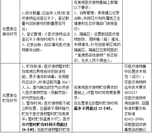 表 新冠肺炎疫情醫(yī)療廢物處理處置全過程環(huán)境管理要求