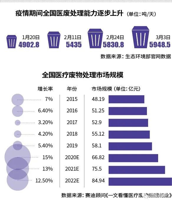 壓力之下,整個醫(yī)廢處理產(chǎn)業(yè)在短時間內(nèi)被調(diào)動了起來,緊急擴大了醫(yī)廢處理產(chǎn)能。
