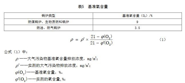 5.2大氣污染物基準(zhǔn)氧含量排放濃度折算方法實(shí)測的鍋爐顆粒物、二氧化硫、氮氧化物、一氧化碳、汞及其化合物的排放濃度,應(yīng)執(zhí)行GB5468或GB/T16157規(guī)定,按公式(1)折算為基準(zhǔn)氧含量排放濃度。各類燃燒設(shè)備的基準(zhǔn)氧含量按表5的規(guī)定執(zhí)行。