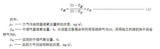 6.3正常工況下,對(duì)于水泥窯及窯尾余熱利用系統(tǒng)排氣、采用獨(dú)立熱源的烘干設(shè)備排氣,應(yīng)同時(shí)對(duì)排氣中氧含量進(jìn)行監(jiān)測(cè),實(shí)測(cè)大氣污染物排放濃度應(yīng)按公式(1)換算為基準(zhǔn)氧含量狀態(tài)下的基準(zhǔn)排放濃度,并以此作為判定排放是否達(dá)標(biāo)的依據(jù)。