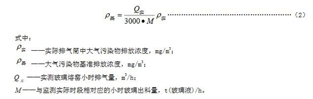 6.4純氧燃燒玻璃熔窯應(yīng)監(jiān)測(cè)排氣筒中大氣污染物排氣濃度、排氣量及相應(yīng)時(shí)間的玻璃出料量,按式(2)計(jì)算基準(zhǔn)排放量[3000 m3/t(玻璃液)]條件下的基準(zhǔn)排放濃度,并以此作為判定排放是否達(dá)標(biāo)的依據(jù)。