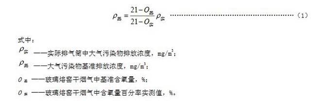 6.3正常工況下,對(duì)于玻璃熔窯排氣(純氧燃燒除外),應(yīng)同時(shí)對(duì)排氣中含氧量進(jìn)行監(jiān)測(cè),實(shí)測(cè)排氣筒中大氣污染物排放濃度應(yīng)按式(1)換算為基準(zhǔn)含氧量為8%狀態(tài)下的基準(zhǔn)排放濃度,并以此作為排放是否達(dá)標(biāo)的依據(jù)。