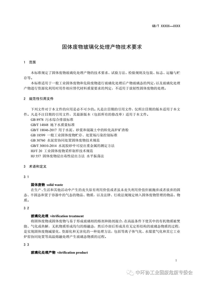 日前全國產(chǎn)品回收利用基礎與管理標準化技術委員會發(fā)布了《固體廢物玻璃化處理產(chǎn)物技術要求(征求意見稿)》,具體內(nèi)容如下: