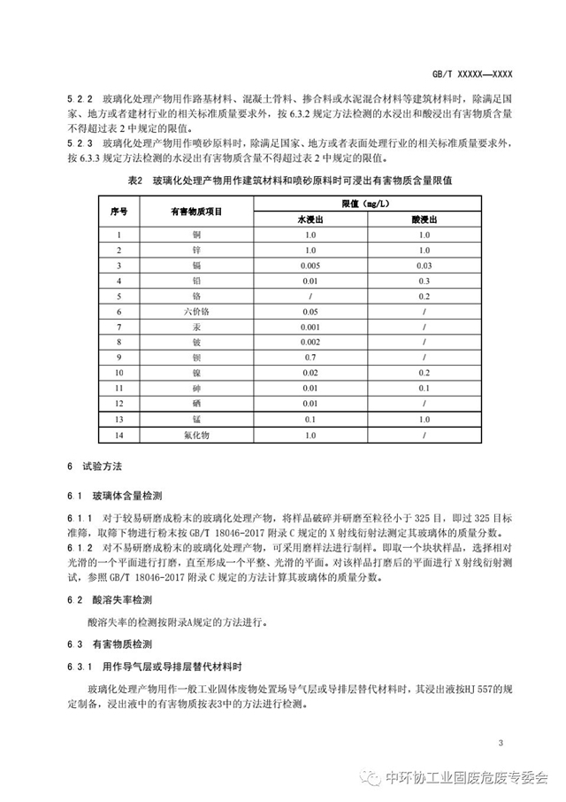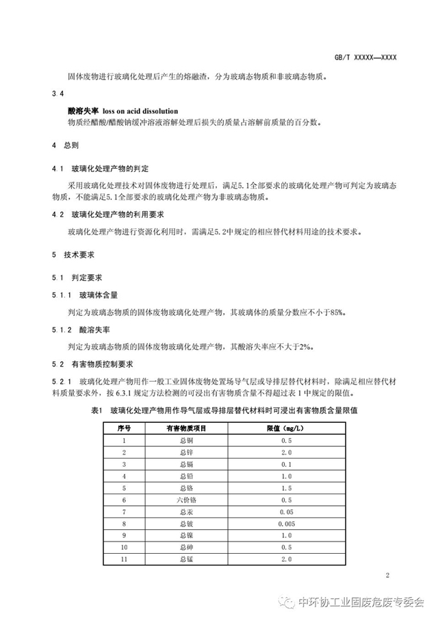 為對固體廢物玻璃化處理產(chǎn)物進行技術界定,加強對固廢玻璃化處理產(chǎn)物的風險控制,根據(jù)國家標準化管理委員會標準制修訂計劃,本技術委員會組織開展了國家標準《固體廢物玻璃化處理產(chǎn)物技術要求》(計劃編號:20171153-T-469)研制工作。本標準項目由全國危險廢物處理處置和利用標準工作組相關單位負責研制,目前已經(jīng)完成標準征求意見稿?,F(xiàn)就該標準公開征求意見,請組織相關人員研究提出書面反饋意見,并于2020年5月10日前填寫意見反饋表,反饋至秘書處(word版文件以及蓋章后的pdf掃描件請同時發(fā)送至:fangfei@cnis.ac.cn)。