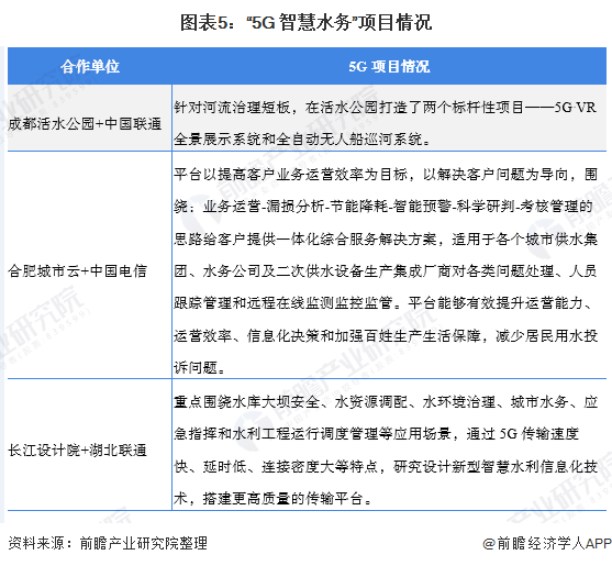 此外,各地水務(wù)集團(tuán)在加快“5G+智慧水務(wù)”項目的落地和進(jìn)程。例如,2019年7月,四川首個5G“智慧水務(wù)”項目亮相,項目中的5G VR全景展示系統(tǒng)和全自動無人船巡河系統(tǒng)引人矚目。