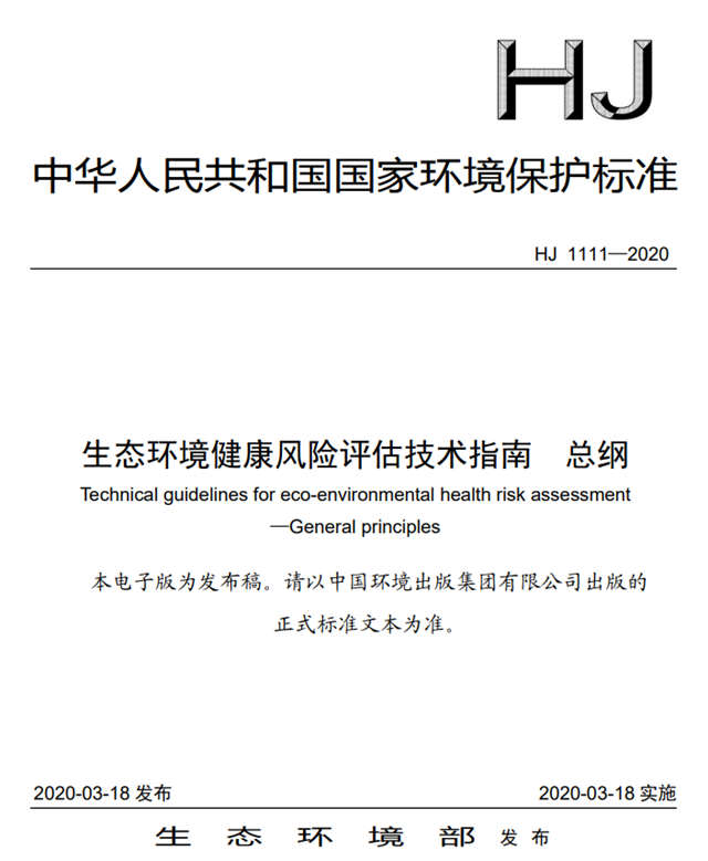 《生態(tài)環(huán)境健康風(fēng)險評估技術(shù)指南 總綱》(HJ 1111—2020)。