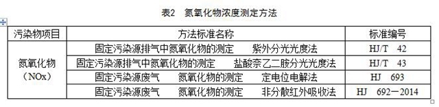 5.6 對氮氧化物排放濃度的測定采用表2所列的方法標準。本標準發(fā)布實施后,有新發(fā)布的國家環(huán)境監(jiān)測分析方法標準,其方法適用范圍相同的,也適用于本排放標準氮氧化物的測定。