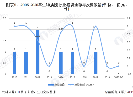 從生物質(zhì)能行業(yè)的投資事件數(shù)量來(lái)看,2017年生物質(zhì)能行業(yè)融資事件1件。2019年新能源行業(yè)的融資事件有0件,2020年1-3月中旬新能源行業(yè)融資事件數(shù)量有0件。