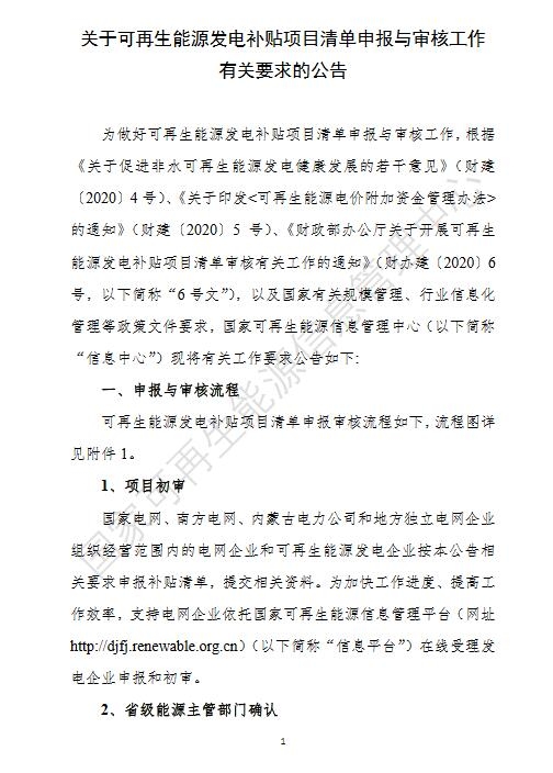 近日,財政部辦公廳印發(fā)了《關(guān)于開展可再生能源發(fā)電補貼項目清單審核有關(guān)工作的通知》(財辦建〔2020〕6號,以下簡稱《通知》)、國家可再生能源信息管理中心印發(fā)了《關(guān)于可再生能源發(fā)電補貼項目清單申報與審核工作有關(guān)要求的公告》(以下簡稱《公告》),對補貼項目清單審核、公布等工作進行了部署。
