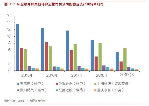 1)輕資產(chǎn),環(huán)衛(wèi)行業(yè)固定資產(chǎn)周轉(zhuǎn)率在2以上,同時應(yīng)收賬款賬期一般在三個月以內(nèi),對資金的要求相對較低。近年來環(huán)衛(wèi)服務(wù)公司固定資產(chǎn)周轉(zhuǎn)率略有下降,主要是因為新增購置了較多的作業(yè)車輛和設(shè)備。