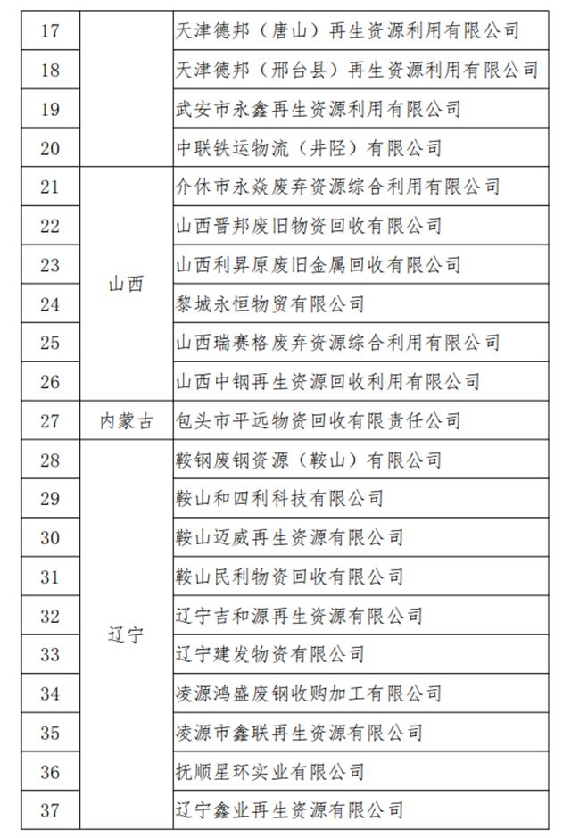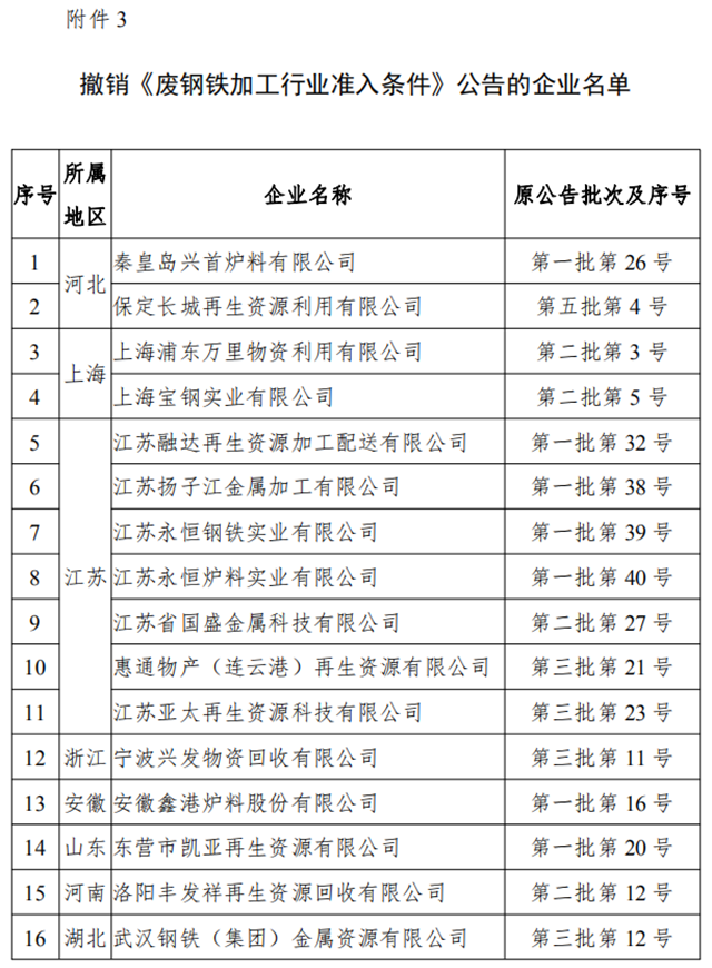 3.撤銷《廢鋼鐵加工行業(yè)準(zhǔn)入條件》公告的企業(yè)名單