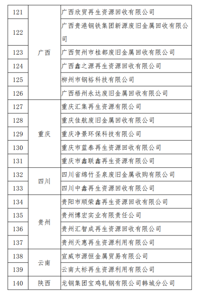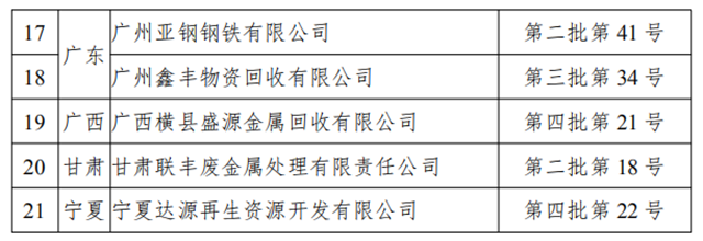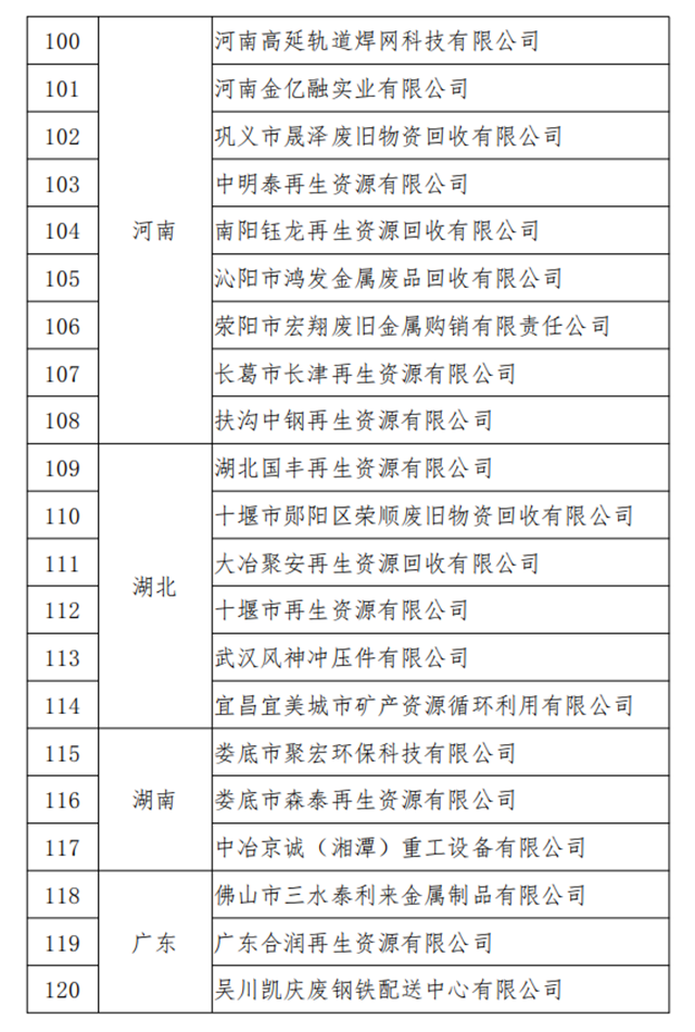 原標(biāo)題:符合《廢鋼鐵加工行業(yè)準(zhǔn)入條件》企業(yè)名單(第七批)、符合《廢塑料綜合利用行業(yè)規(guī)范條件》企業(yè)名單(第三批)以及撤銷《廢鋼鐵加工行業(yè)準(zhǔn)入條件》公告的企業(yè)名單