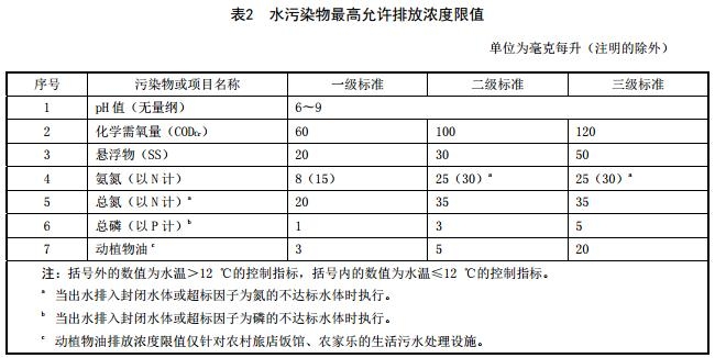 4.2.1 各級標準水污染物控制項目最高允許排放濃度見表 2。