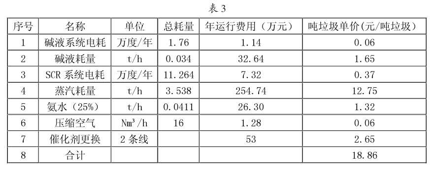 1、堿液和SCR的運營成本(見表3)
