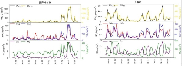 齊齊哈爾市(左)、長春市(右)常規(guī)污染物濃度變化
