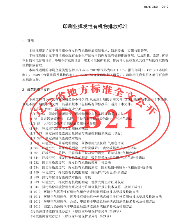 日前,遼寧省發(fā)布印刷業(yè)揮發(fā)性有機(jī)物排放標(biāo)準(zhǔn)(DB21/3161-2019),規(guī)定了遼寧省印刷業(yè)揮發(fā)性有機(jī)物排放控制要求、監(jiān)測(cè)要求、實(shí)施與監(jiān)督等。詳情如下: