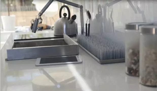 鳥巢溫控器可以讓內部始終保持著適合人體舒適的溫度,Amazon Echo則是實現(xiàn)智能家居用聲音控制家居用品的智能音箱,能實現(xiàn)房子的語音控制和智能化,SageGlass制造的特殊玻璃能能根據(jù)室外陽光強度來遮陰,這樣就不需要百葉窗了,KASITA還配備了PHILIPS色調燈光,可以通過app控制色溫,讓房間光線配合人的需要。