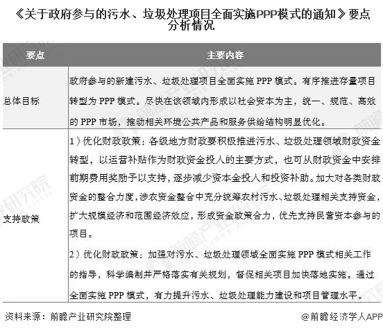 污水治理也一直是政府部門重點關注的環(huán)境問題。2017年,財政部、住房城鄉(xiāng)建設部、農(nóng)業(yè)部、環(huán)境保護部聯(lián)合印發(fā)《關于政府參與的污水、垃圾處理項目全面實施PPP模式的通知》,《通知》指出:為促進污水、垃圾處理行業(yè)健康發(fā)展,在污水、垃圾處理領域全方位引入市場機制,政府參與的新建污水、垃圾處理項目全面實施PPP模式。