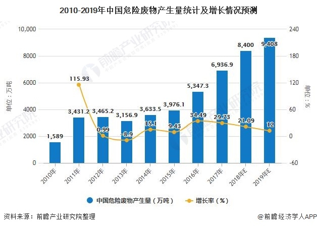 2、2020年中國危廢產(chǎn)生量預(yù)計(jì)突破1億噸,危廢處置向深度資源化發(fā)展