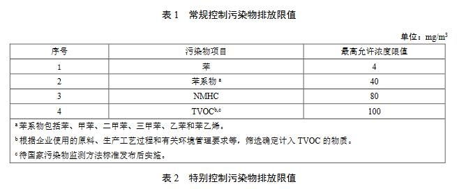 4.1 新建企業(yè)自標(biāo)準(zhǔn)實(shí)施之日起,現(xiàn)有企業(yè)自20□□年□□月□□日起,執(zhí)行表1和表2規(guī)定的揮發(fā)性有機(jī)物排放限值及其他污染控制要求。