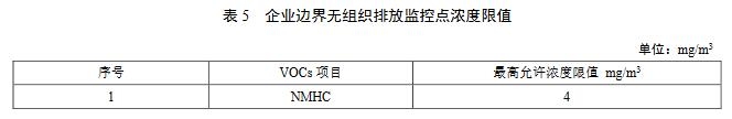 6.3 企業(yè)邊界無(wú)組織排放監(jiān)控點(diǎn)濃度限值應(yīng)執(zhí)行表5規(guī)定的限值。
