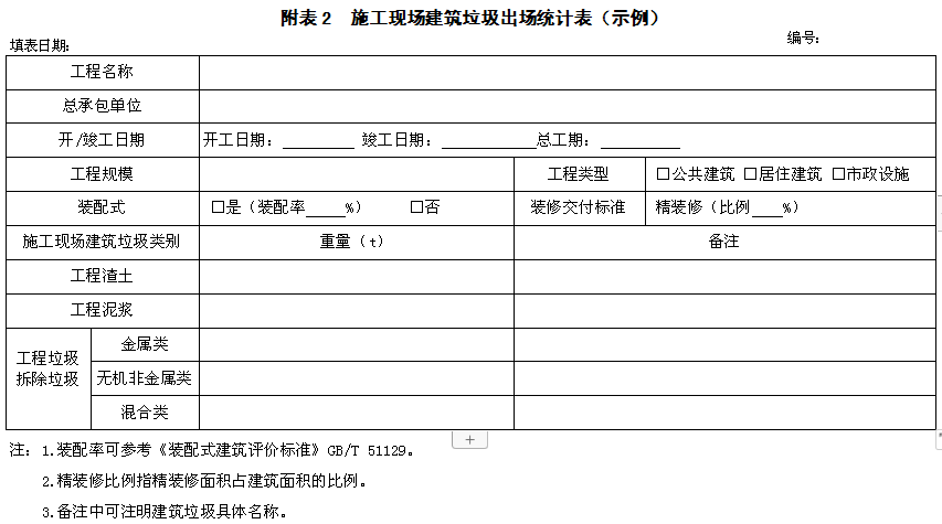 7.2 建筑垃圾每次稱重(計(jì)量)后,應(yīng)及時(shí)記錄且須按各類施工現(xiàn)場建筑垃圾實(shí)際處理情況填寫,并保持記錄的連續(xù)性、真實(shí)性和準(zhǔn)確性。記錄應(yīng)留存?zhèn)洳?。記錄分為日常記錄表和統(tǒng)計(jì)表,具體可參考附錄B表1、2。