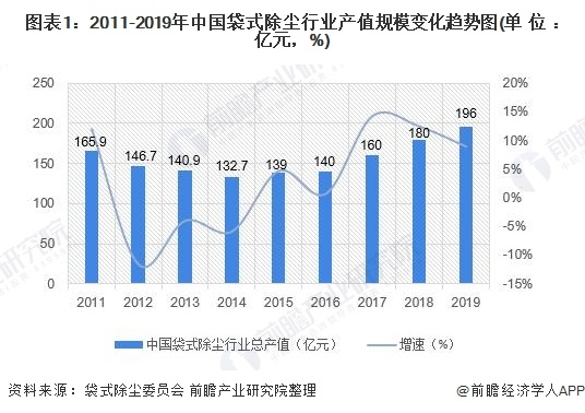 一、2019年中國袋式除塵行業(yè)產(chǎn)值達(dá)196億元