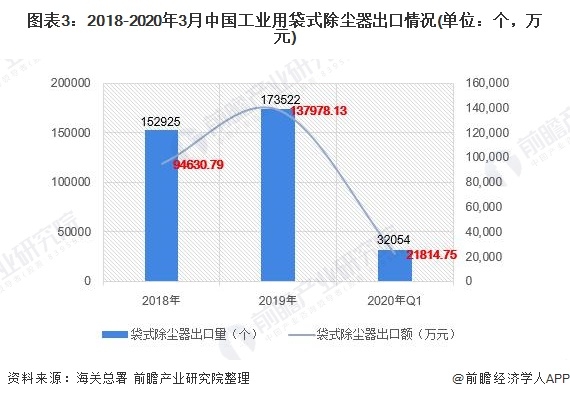 經(jīng)過海關(guān)代碼查詢,2019年工業(yè)用袋式除塵器(84213922)的出口數(shù)量為17.35萬個,出口額為13.80億元;截至2020年3月工業(yè)用袋式除塵器(84213922)的出口數(shù)量為3.21萬個,出口額為2.18億元。