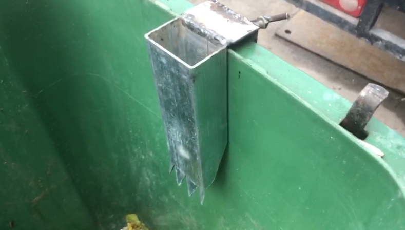 通常情況下,小區(qū)中產(chǎn)生的廚余垃圾和飯館中產(chǎn)生的“泔水”有著本質(zhì)的區(qū)別。“就拿咱們普通居民家庭的廚余垃圾桶來說,很少有居民家的廚余垃圾桶里扔的全是有異味的剩飯剩菜,大部分家庭的廚余垃圾桶里扔的其實(shí)是摘下來的菜葉、果核果皮、茶葉渣、雞蛋殼、花生瓜子皮等比較干燥的垃圾。這樣的廚余垃圾,就算敞著口在屋里擺上一天,甚至在家里過夜,其實(shí)都不會(huì)有太大的味道。”城管委工作人員解釋說,但是如果將異味較大的湯湯水水一股腦倒入廚余垃圾桶,會(huì)導(dǎo)致整桶廚余垃圾“泡湯”,暴曬發(fā)酵后更容易產(chǎn)生異味。所以,才會(huì)建議居民在投放廚余垃圾前,先將水分瀝干,避免“有味”。另外,按照《北京市居住小區(qū)垃圾分類實(shí)施辦法》規(guī)定,廚余垃圾要“日產(chǎn)日清”,在垃圾投放高峰期,小區(qū)可以適當(dāng)增加收運(yùn)頻次或增加收集容器數(shù)量,確保垃圾桶不滿冒。廢舊鋼管被截成尖銳鋸齒狀倒刺的短棍,焊接成“L”形橫梁后,掛在廚余垃圾桶桶沿,一個(gè)廚余垃圾“破袋神器”便安裝完畢。▲ 破袋神器
