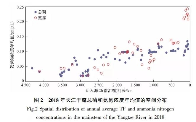 依據(jù)2001—2018年長江主要污染物情況,重點選擇總磷、氨氮進行濃度和污染物通量長期變化趨勢分析;另外,對高錳酸鹽指數(shù)、重金屬、石油類、糞大腸菌等進行了簡單分析。