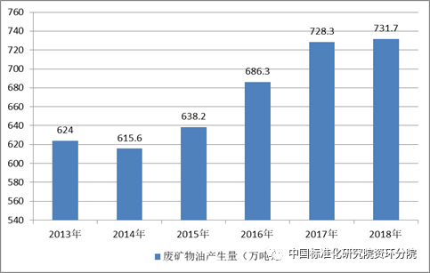 據(jù)統(tǒng)計(jì),我國每年產(chǎn)生大量的廢礦物油,2013年我國廢礦物油行業(yè)產(chǎn)生量約624萬噸,到2018年產(chǎn)生量達(dá)到了731.7萬噸。