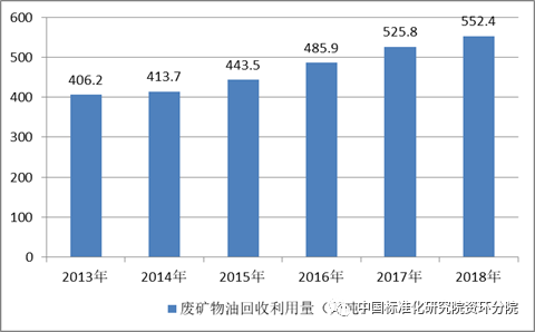 同時(shí),我國廢礦物油的回收利用量也逐年攀升。2013年我國廢礦物油行業(yè)回收利用量約406.2萬噸,到2018年達(dá)到了552.4萬噸。