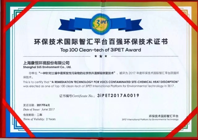 康恒環(huán)境“化學(xué)熱升溫?zé)峤馕迯?fù)技術(shù)”被授予“百強(qiáng)環(huán)保技術(shù)”獎(jiǎng)