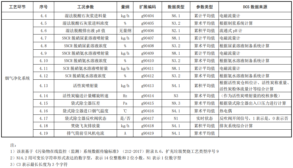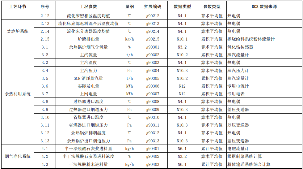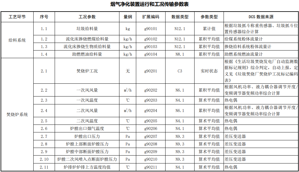 煙氣凈化裝置運行和工況傳輸參數(shù)表如下: