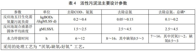 8.2.3.8 活性污泥法宜通過(guò)投加填料等方式,提高污泥濃度和耐沖擊負(fù)荷能力,改善處理效果。主要設(shè)計(jì)參數(shù)宜參考表 4 取值。采用活性污泥法時(shí),進(jìn)水 BOD5含量不宜小于 60mg/L。