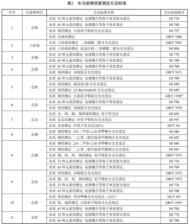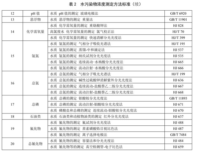 6.2.3 水污染物的分析測定采用表 2 所列的方法標準。