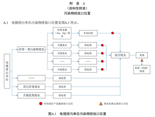 6.1.1 電鍍排污單位和專門處理電鍍廢水的集中式污水處理廠應按照環(huán)境監(jiān)測管理規(guī)定和技術規(guī)范的要求,設計、建設、維護永久性采樣口、采樣測試平臺和排污口標志。